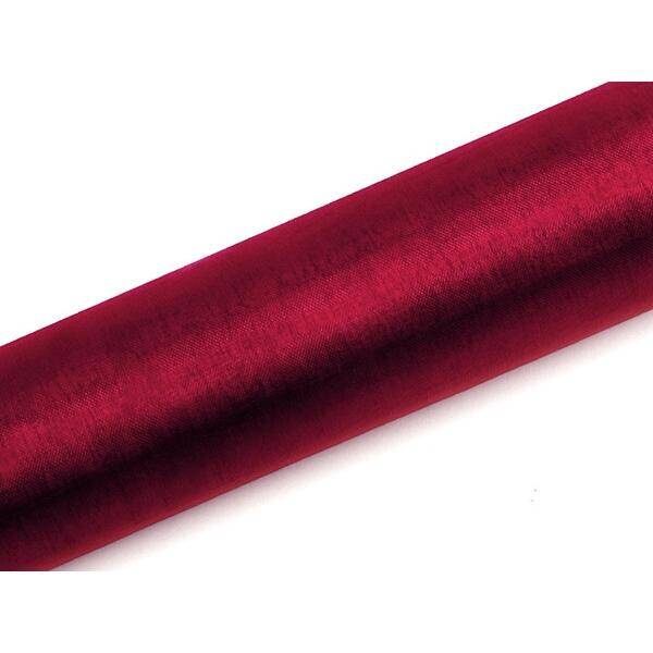 Organza gładka 0,16x9m czerwone wino, miękka, błyszcząca, nieobszyta jest