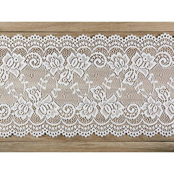 Koronka 0,15x9m 1 szt. złamana biel jest nieodzownym elementem ozdobnym stołów ślubnych oraz dekoracji wnętrz kościołów.