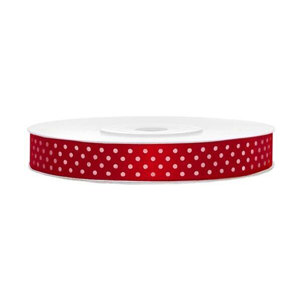 Tasiemka satynowa Kropki 12mm x 25m 1 szt. czerwona idealnie nadaje się do tworzenia dekoracji, zaproszeń, stroików itp.