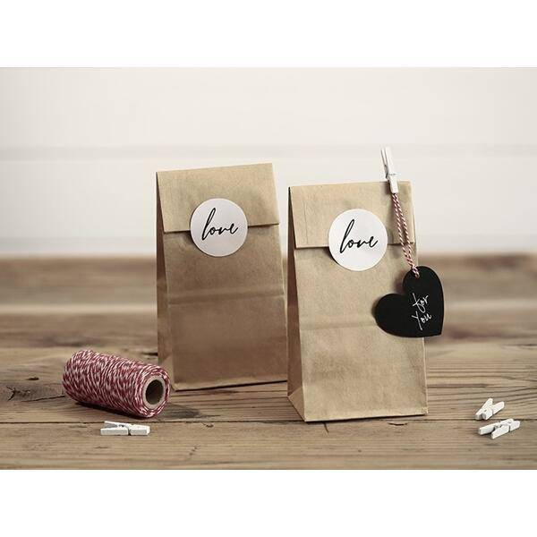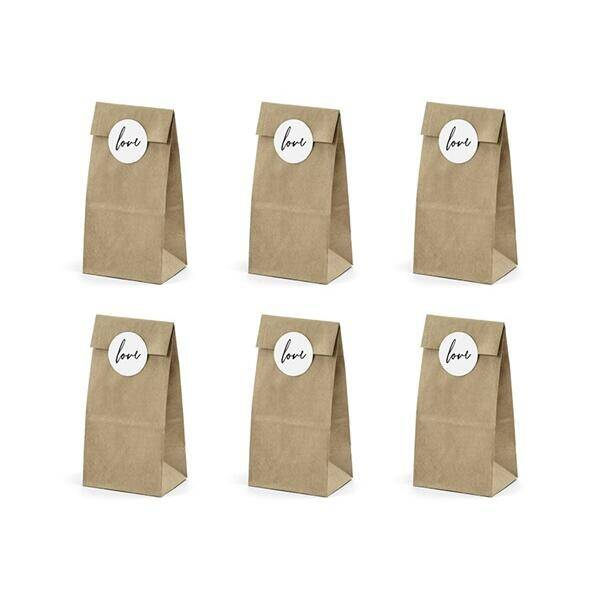 Torebki na słodycze Love 8x18x6cm 6 szt. kraft z 6 białymi naklejkami z napisem Love.