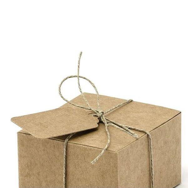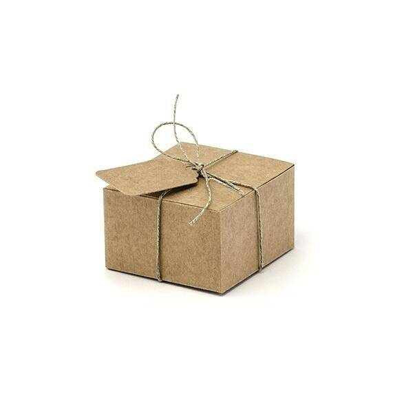 Pudełeczko kraft z zawieszką 6x5,5x3,5cm 10 szt. idealne na prezenciki dla gości.