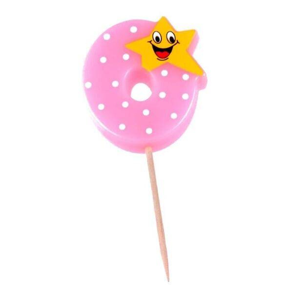 Świeczka cyferka "0" z gwiazdką 8cm różowa