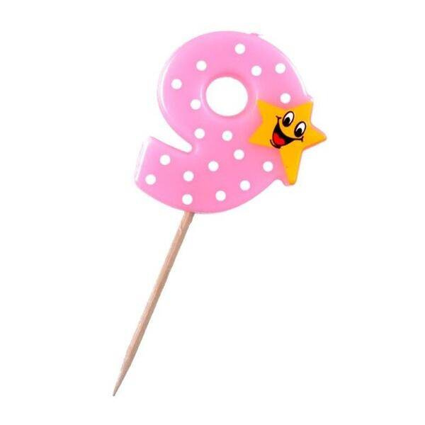 Świeczka cyferka "9" z gwiazdką 8cm różowa