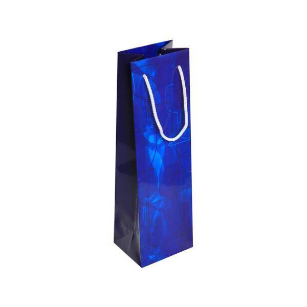 Torba prezentowa Butelka 11x10x34cm granat wykonana z papieru laminowanego błyszczącego.