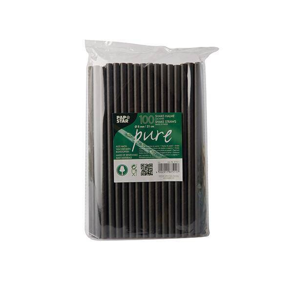 PURE Słomki papierowe Shake 21cm 100 szt. czarne to przyjazna dla środowiska alternatywa plastikowych słomek do picia.