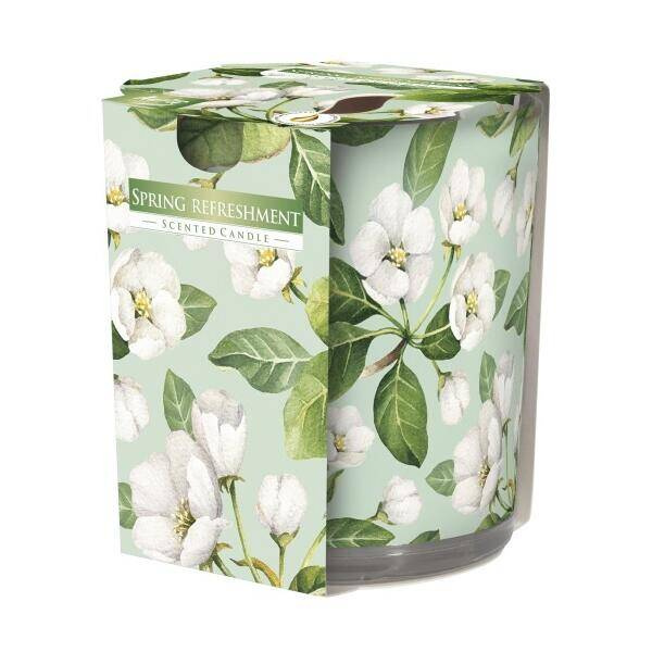 Świeca zapachowa w szkle 1 szt. Wiosenne Orzeźwienie stanowi nie tylko źródło światła oraz ujmujący element dekoracji, ale przede wszystkim nadaje wnętrzu pożądany klimat.