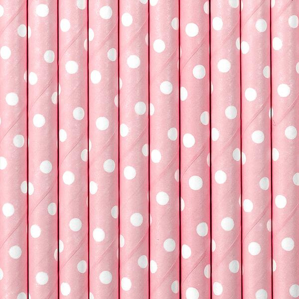 Słomki papierowe 19,5cm 10 szt. j.róż-białe kropki