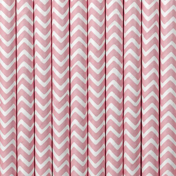 Słomki papierowe 19,5cm 10 szt. jasnoróżowo-białe chevron to idealne urozmaicenie wszelkich napojów. Sprawdzą się podczas przyjęć dzieci i dorosłych.