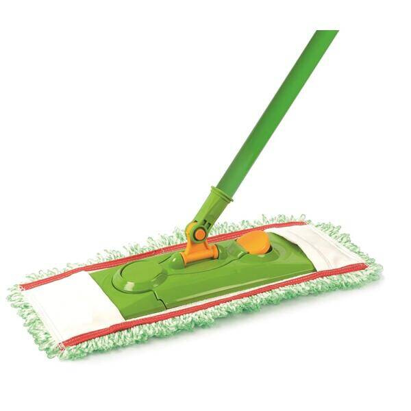 Komplet do sprzątania składający się metalowego kija o długości 120 cm powlekanego tworzywem, stelaża z giętkim przegubem 360° oraz wkładu. Dzięki wymiennej nakładce doskonale nadaje się do czyszczenia wszelkich powierzchni, a przegub ułatwia dotarcie do najbardziej niedostępnych miejsc. Wkład można prać w pralce w temperaturze 40-60°. Stelaż euromopa posiada specjalne "UCHWYTY" dzięki którym można używać nawet zwykłej ścierki zamiast oryginalnego wkładu.