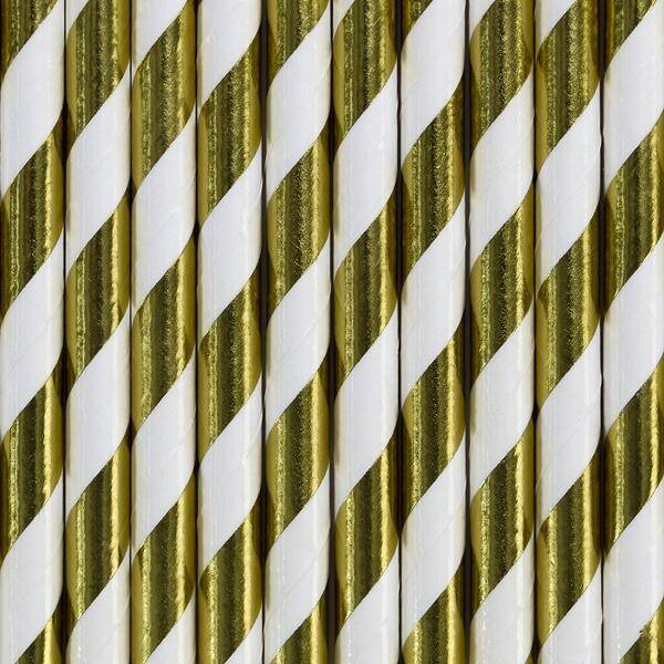 Słomki papierowe 19,5cm 10 szt. złoto-białe paski to idealne urozmaicenie wszelkich napojów. Sprawdzą się podczas przyjęć dzieci i dorosłych.