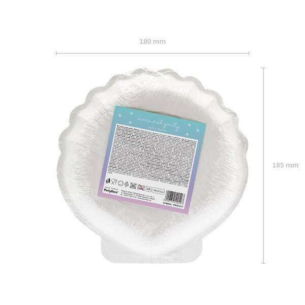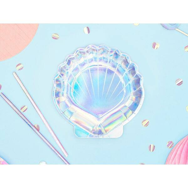 Talerz papierowy Syrenka-Muszla 18,5cm 6 szt. opalizujący idealny na imprezę, piknik czy przyjęcie urodzinowe zarówno dla dzieci jak i dla dorosłych.