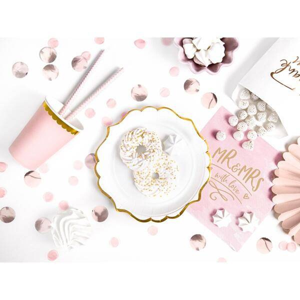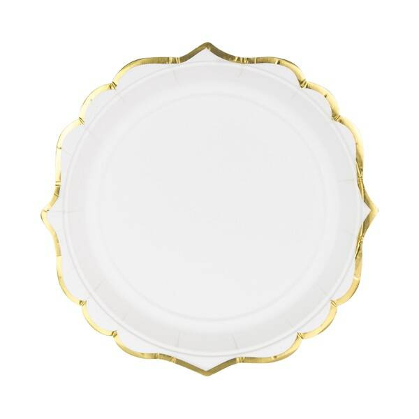 Talerz papierowy 18,5cm 6 szt. biało ze złotym paskiem idealny na imprezę, piknik czy przyjęcie urodzinowe zarówno dla dzieci jak i dla dorosłych.