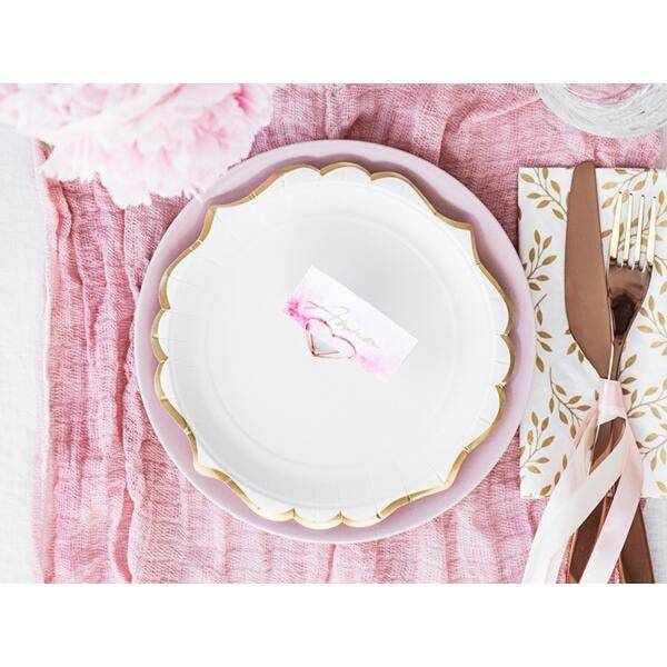 Talerz papierowy 18,5cm 6 szt. biały ze zło. pask.