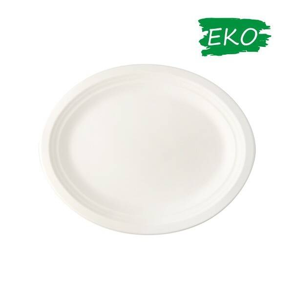 Talerz owalny z trzciny cukrowej 32x26cm 50 szt. idealny na imprezę,