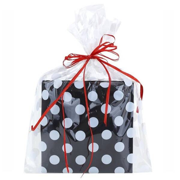 Torebka celofanowa Kropki białe 20x25cm PP 10 szt. przeznaczona do pakowania wszelkiego rodzaju upominków, ozdób, prezentów, kwiatów itp.