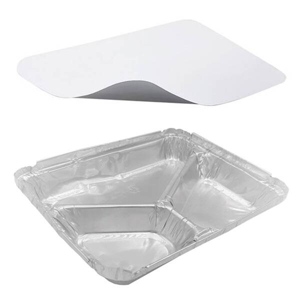 Pojemnik aluminiowy 3-dzielny z deklem 227x181x30cm 100 szt. to opakowanie jednorazowe idealne dla gastronomii.