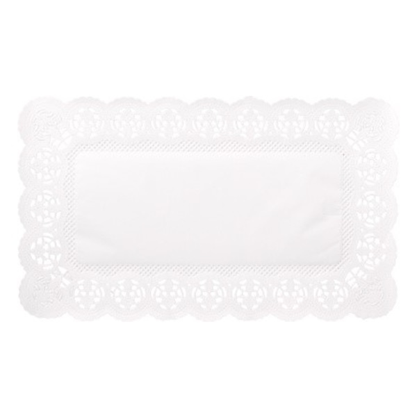 Serwetka papierowa prostokątna 24x15cm 100 szt. biała z pięknymi laserowo wyciętymi wzorami. Nadaje się jako osobna ozdoba stołu bądź jako podkładka pod ciasto.