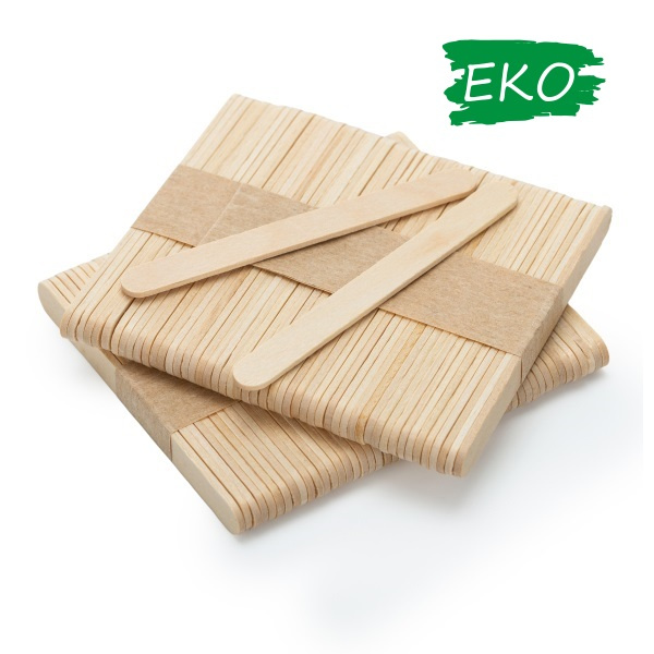 Patyczki drewniane do lodów wykonane w 100% z naturalnie jasnego i biodegradowalnego drewna brzozy.