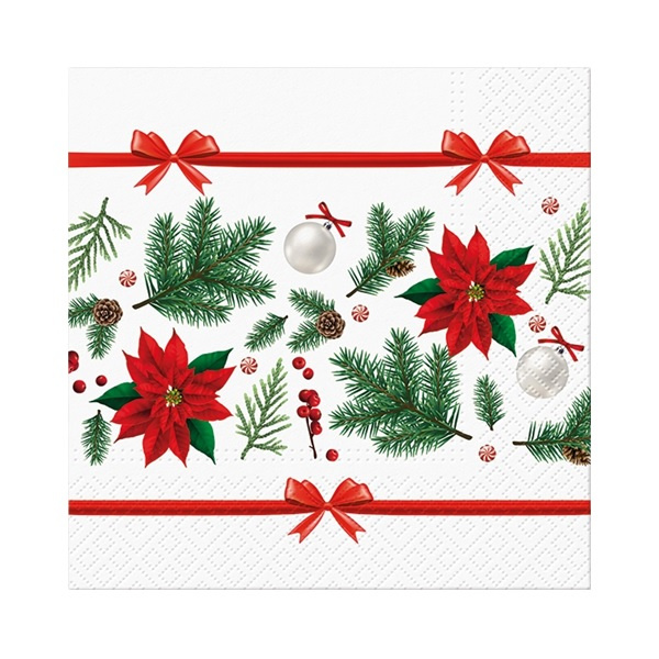 Serwetki Festive Poinsettia 33x33cm 3W 20 szt.