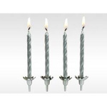 Świeczki urodzinowe 6 szt. + 6 podstawek srebrne