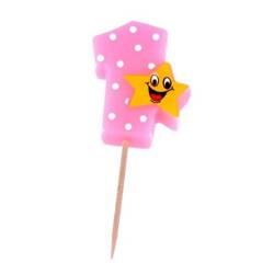 Świeczka cyferka "1" z gwiazdką 8cm różowa