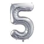 Balon "5" Urodziny 86cm foliowy 1 szt. srebrny