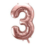 Balon "3" Urodziny 86cm foliowy 1 szt. róż. złoto