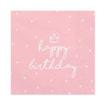 Serwetki Happy Birthday 33x33cm 3W 20 szt. różowe